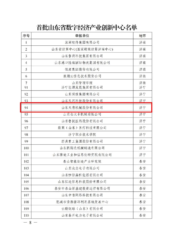 6月,省工信廳公布了首批山東省數(shù)字經(jīng)濟(jì)創(chuàng)新平臺(tái)名單,天意機(jī)械入選首批數(shù)字經(jīng)濟(jì)產(chǎn)業(yè)創(chuàng)新中心名單。