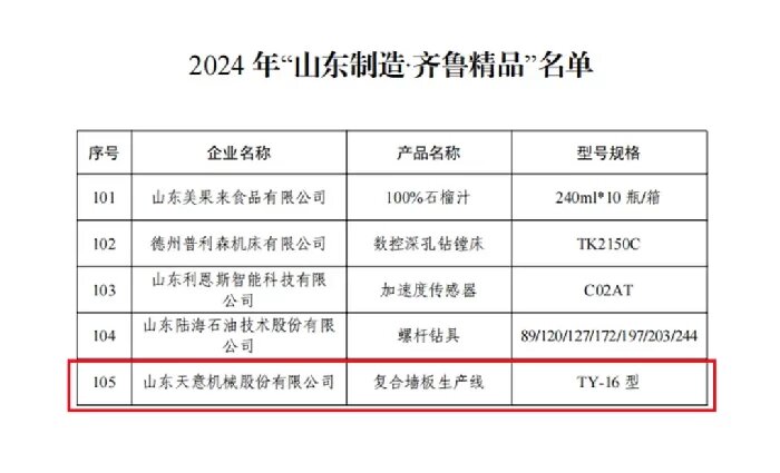 天意機(jī)械裝配式建筑智能裝備榮獲2024年“山東制造·齊魯精品”。